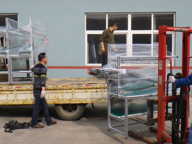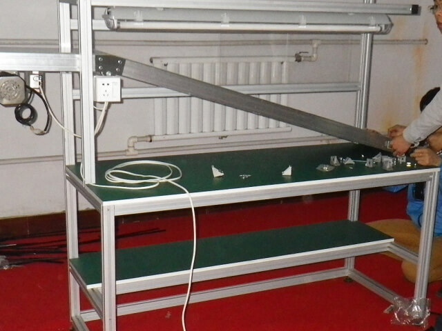 安裝調(diào)試制作完成的防靜電鋁型材皮帶輸送桌發(fā)貨
